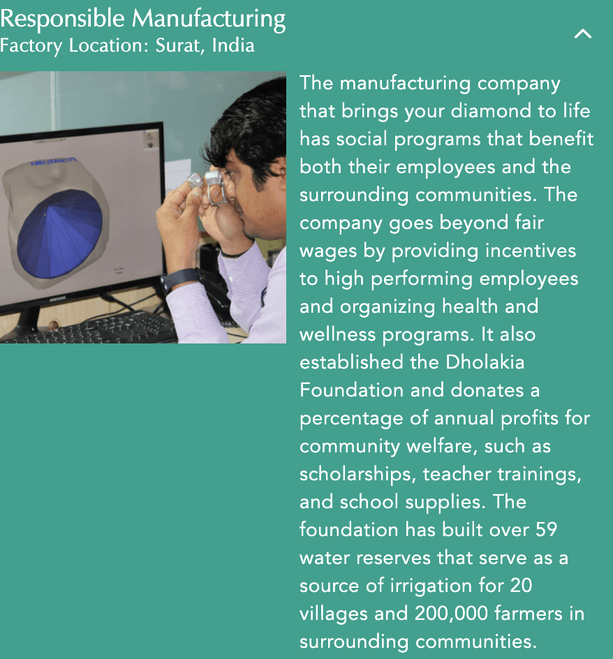 This slogan is meant to guarantee responsible sourcing from all fronts, including human rights abuses, environmental problems, and other ethical practices. I appreciate how Brilliant Earth reviews and certifies the history of its diamonds.