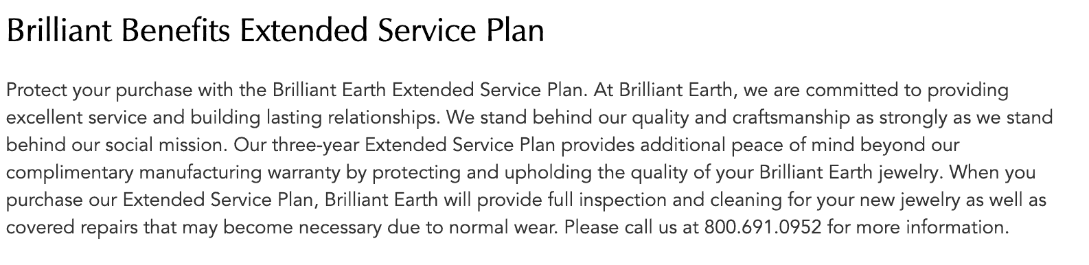 For that reason, Brilliant Earth offers the Brilliant Benefits Extended Service Plan. It’s similar to Kay and Jared’s Extended Service Plan.