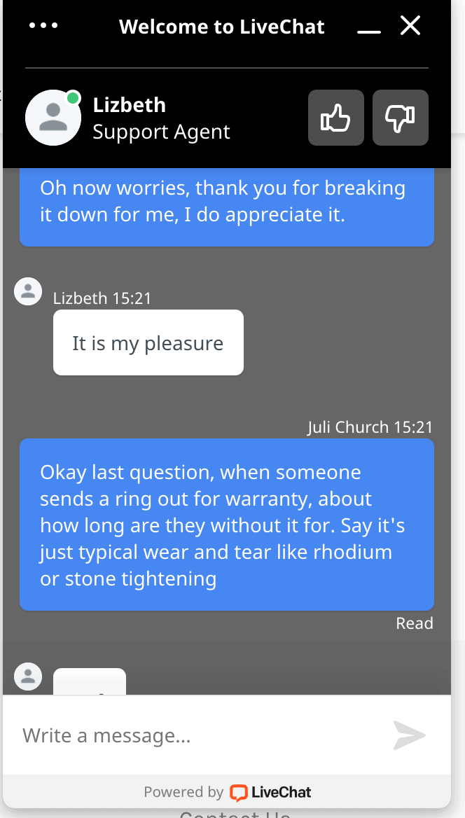 My Ritani Live Chat Experience