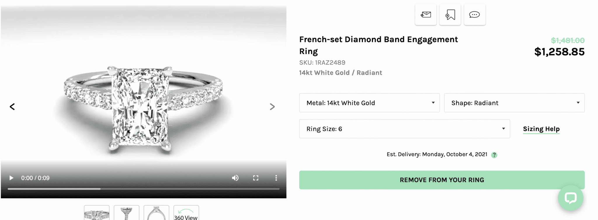 Ritani’s 360˚ viewer has been updated multiple times to be displayed differently. Some of them have the viewer and others don’t, which is indicated in the corner when browsing the catalog.