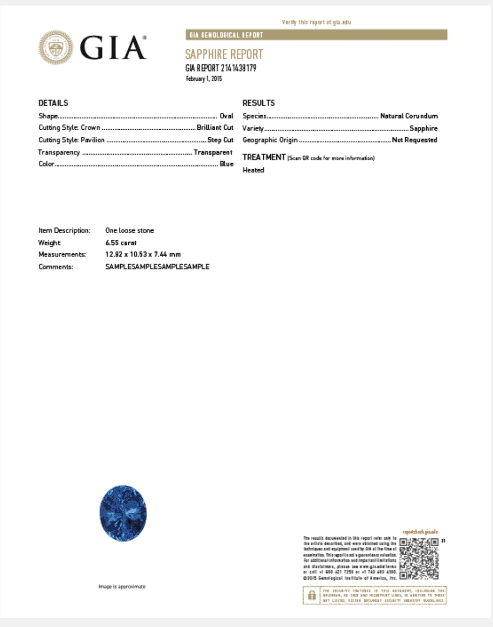 Sample GIA Gemstone Report, a Legit Grading Report