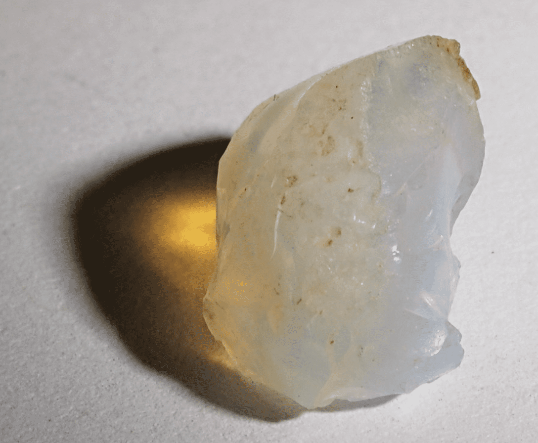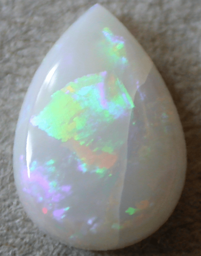 Opalescence is what’s often seen in common white opals. This gives it an iridescence or milky sheen. They are usually a milky translucent to opaque color.