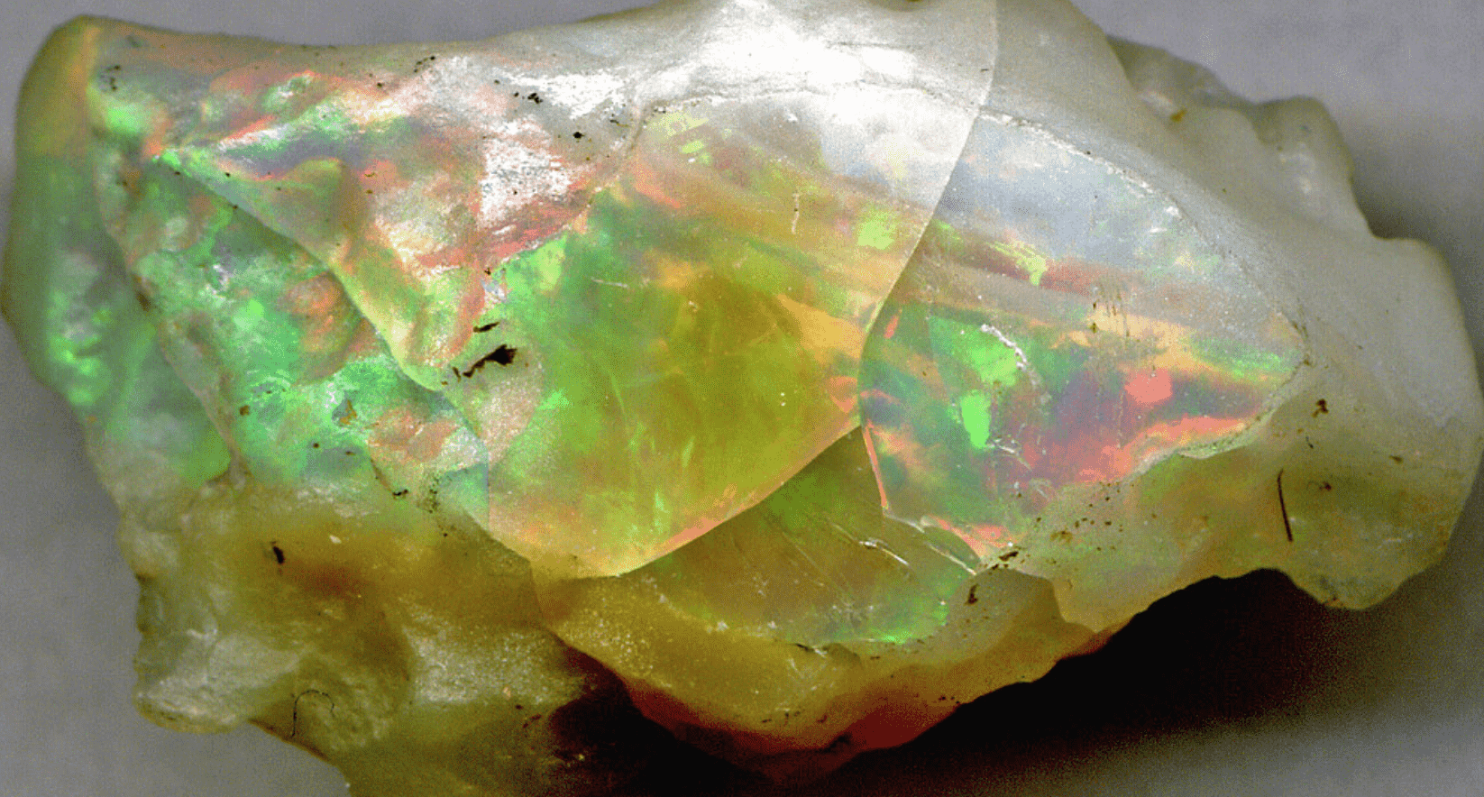 Opals happen when silica has been carried away by the water and deposited into the crevices in other rock. When it dries, it creates silica spheres. The spheres bond together to create the structure of an opal.