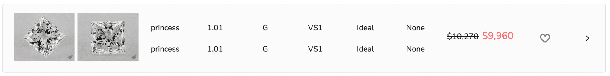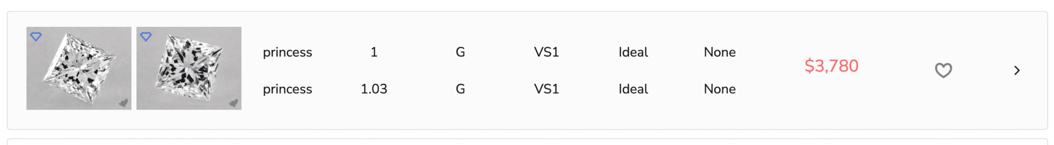 They have over 300,000 lab diamond pairs to choose from. There’s 10 different diamond shapes in their catalog. Most of them are round cut diamonds, but you should able to find a pair no matter what shape you want.