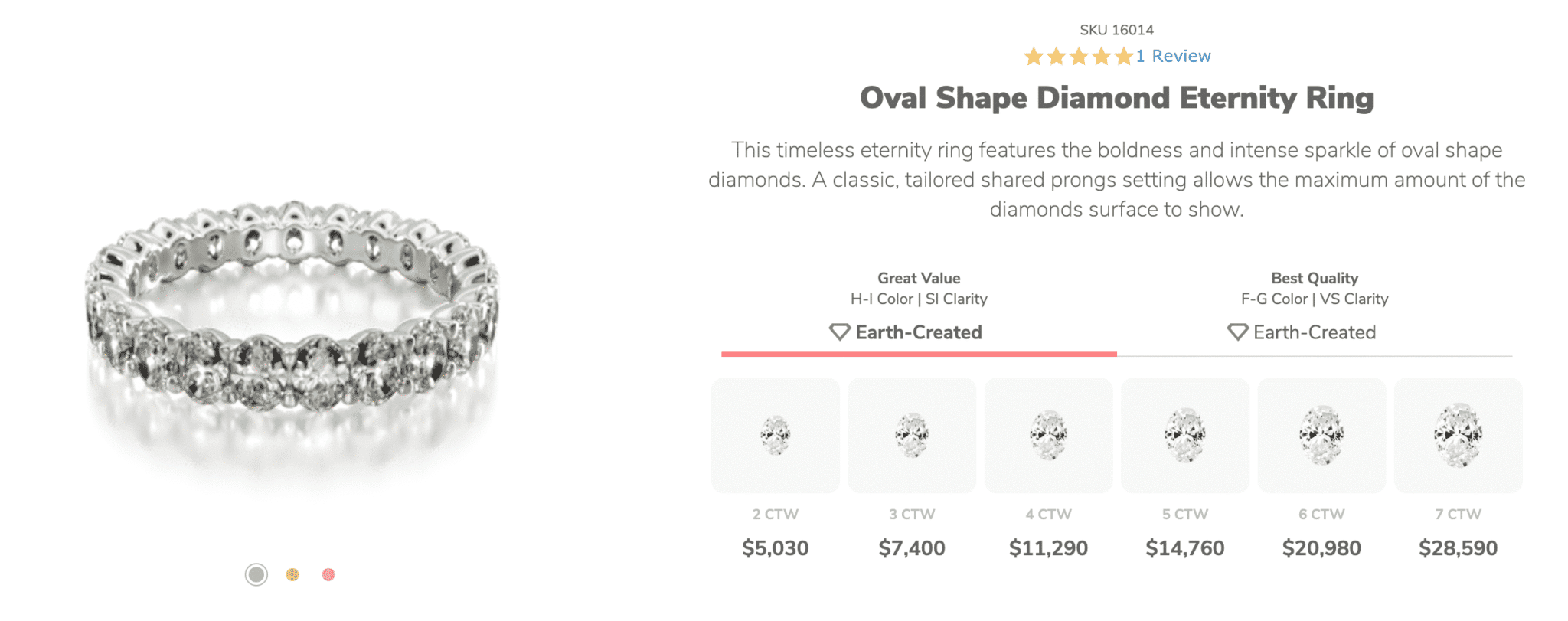 Beneath the better clarity option, they offer you the same eternity band in lab grown diamonds for the low price of $1980. Kay doesn’t offer you that.