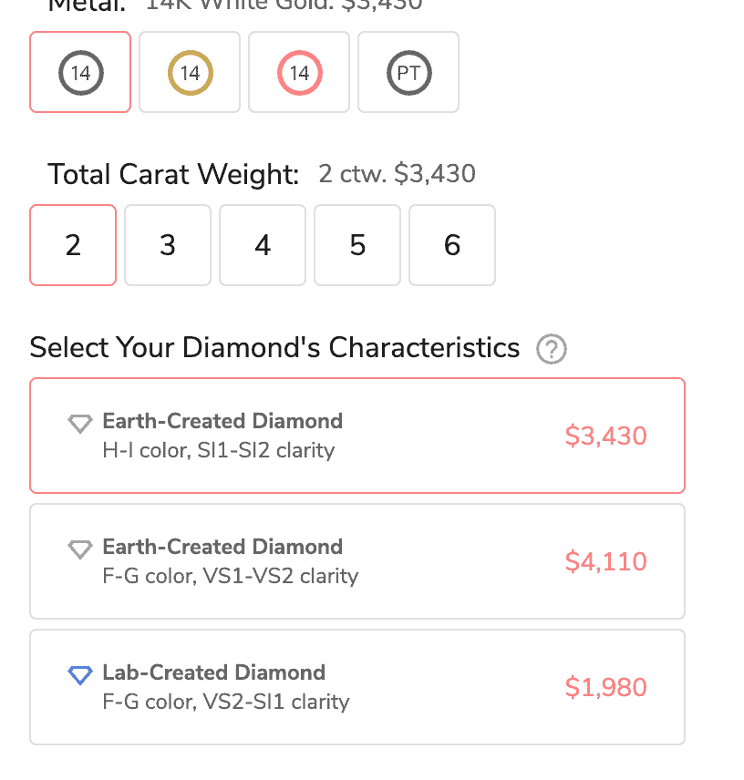 You also have the choice of choosing HI color and SI clarity, or you can choose FG color with VS clarity.