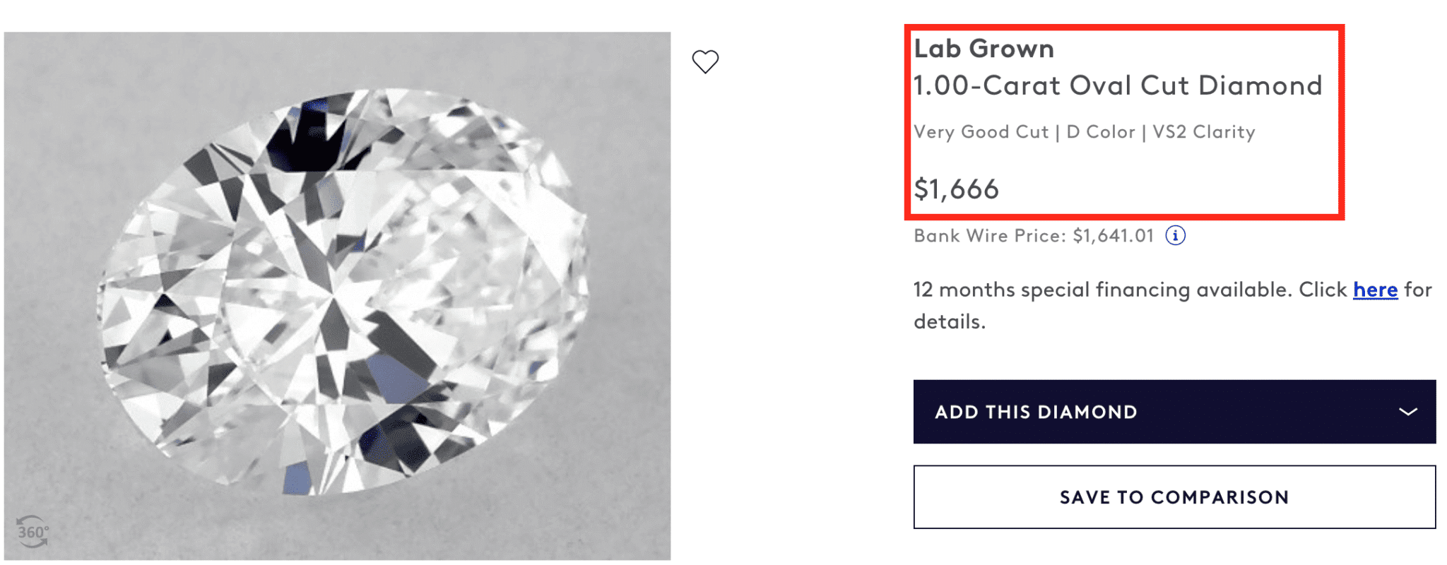 You also have to consider lab grown diamonds too. A lab grown diamond with VS1 clarity isn’t going to be worth as much as a mined diamond with VS2 clarity. Lab grown diamonds are real diamonds in every sense of the word, but don’t hold the same value as mined diamonds.