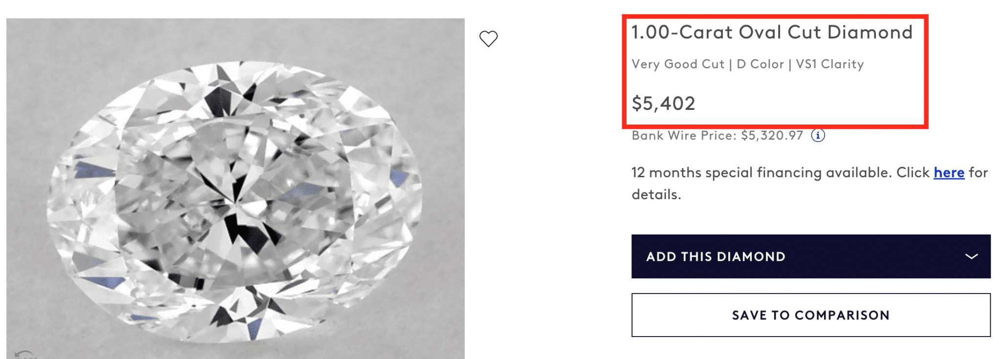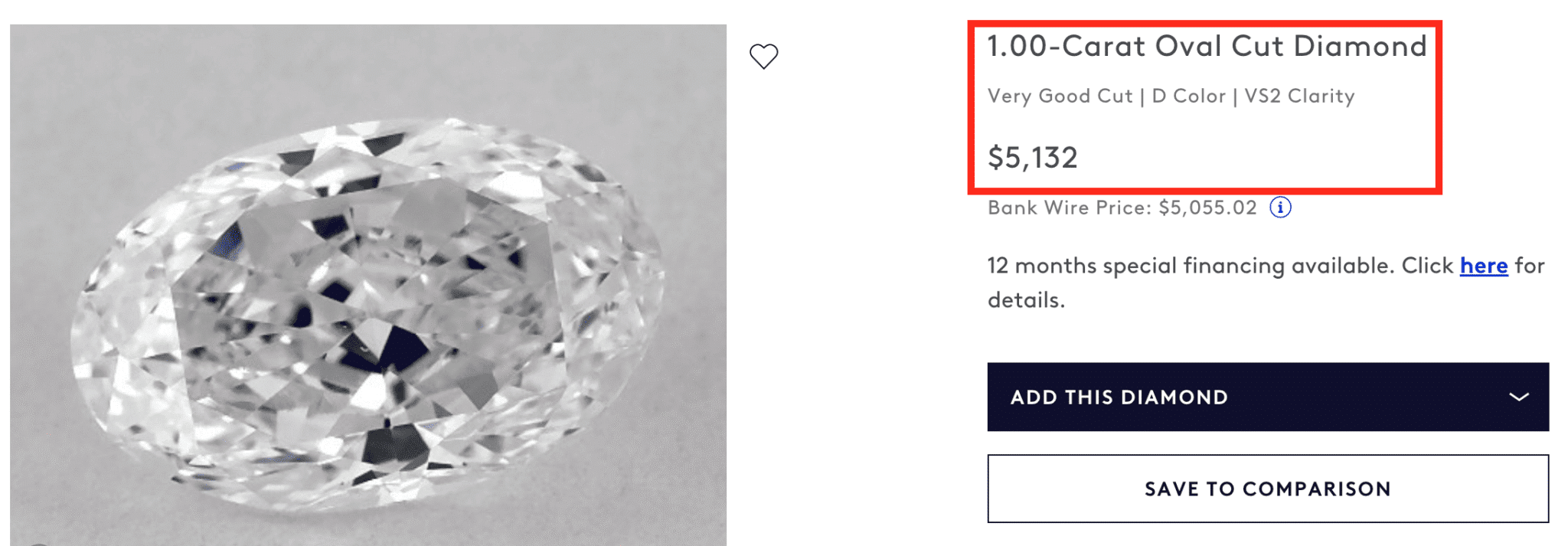 VS2 Mined Diamond, Oval, 1 Carat, D Color $5,132 from Blue Nile at time of posting