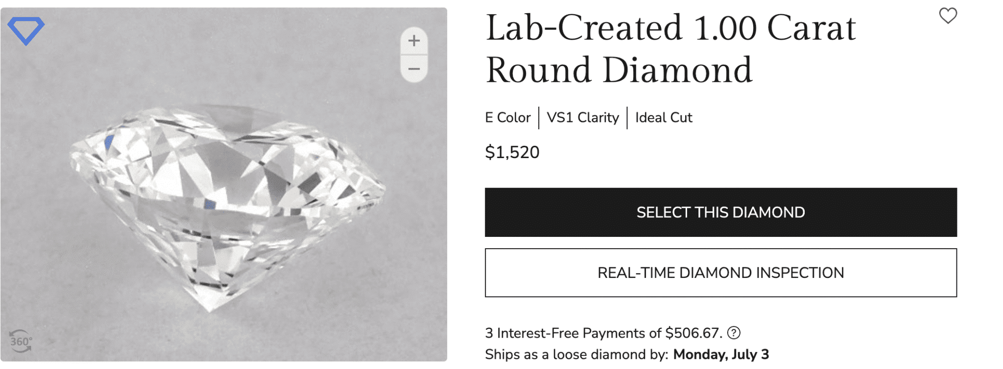 If you want an E color diamond from these guys, it’s likely they’ll push you to wait for their diamond show or special order a loose stone online.