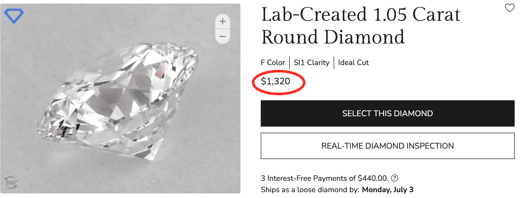 At the end of the day, no matter what color diamond grade you choose, it doesn’t compromise the durability of your diamond. In my opinion, the integrity and structure of your diamond is most important. Even lower quality natural diamonds cost $1,000 and up.