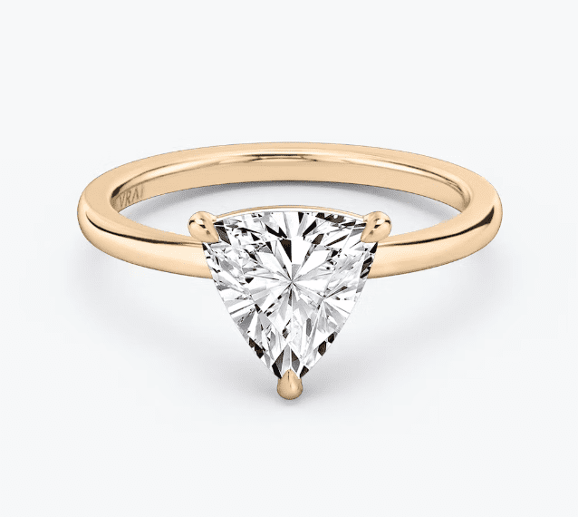 You probably won’t find too many retailers carrying trilliant or trillion cut diamonds. Their triangular shape is incredibly difficult to set and to cut. Often times you’ll find them more as accent stones than center stones.