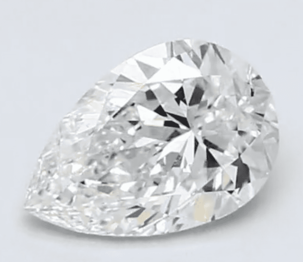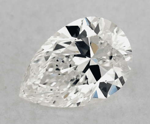 Pear cut diamonds are also called teardrop shapes. They have a pointed tip with a round base in the shape of tear. They have 58 facets like most diamond shapes.