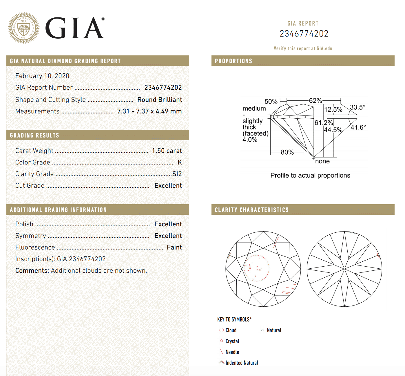 And because you have to have higher clarity and color grades when you go up in carat weight, a 2 carat diamond is not the price equivalent to two 1 carat diamonds.