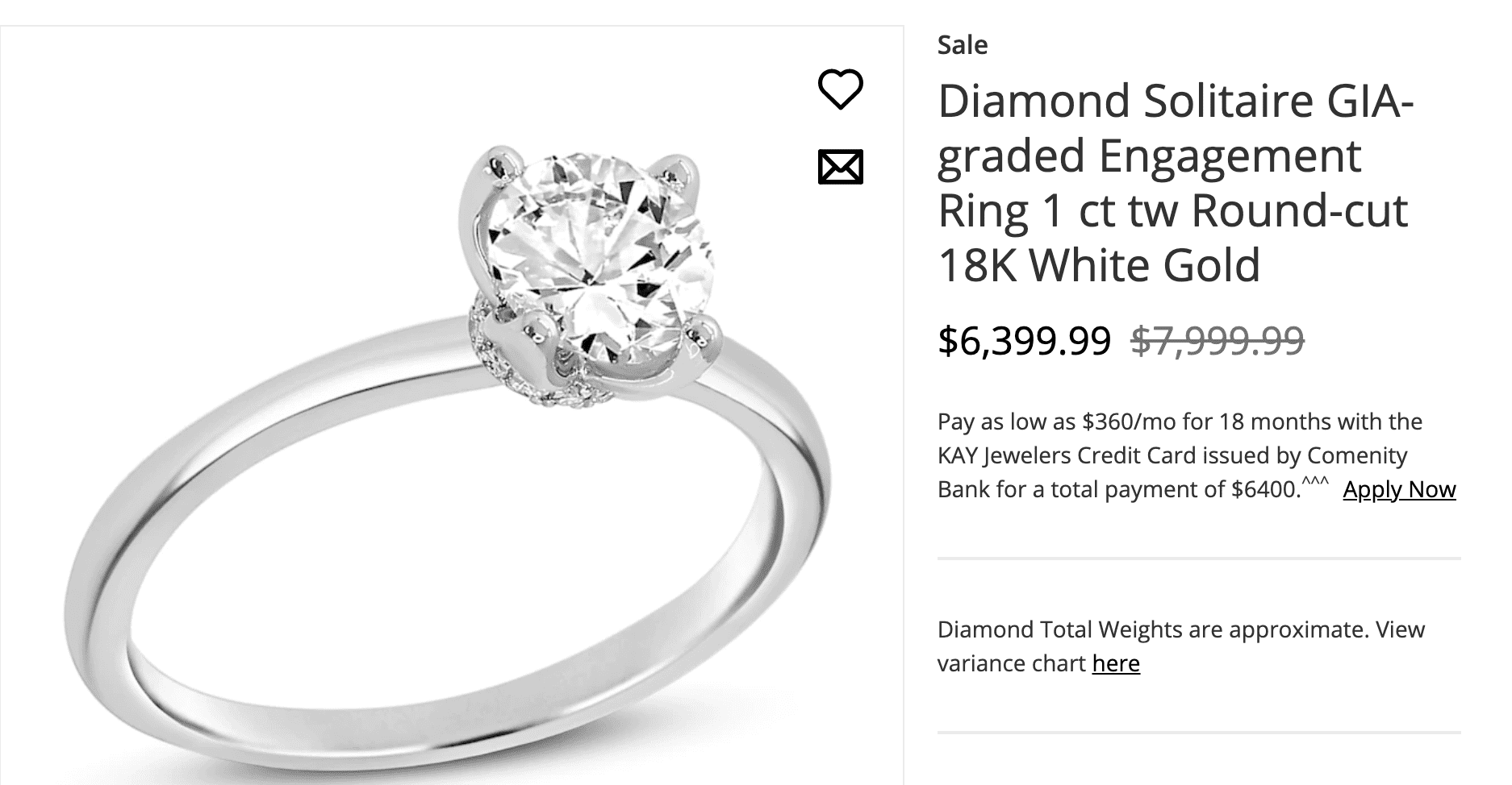 That being said, if you go to purchase wedding jewelry with a GIA certificate from a Kays store, you’re likely to pay double the cost. An uncertified solitaire diamond ring from Kay compared to their price for a GIA certified diamond is outrageous.