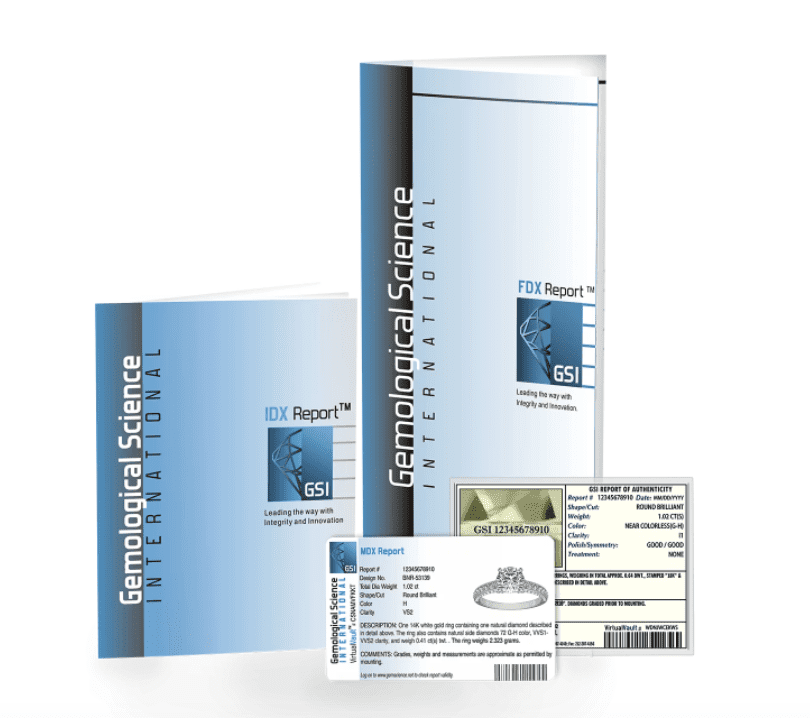There are three types of grading reports you can obtain from the Gemological Science International. They may offer printed or PDF files for their reports.