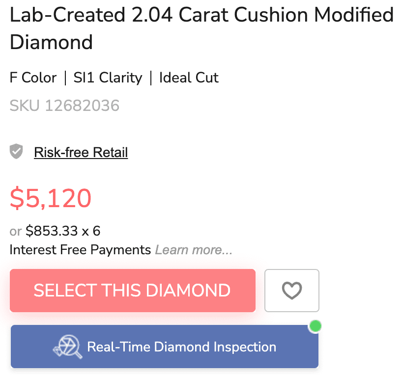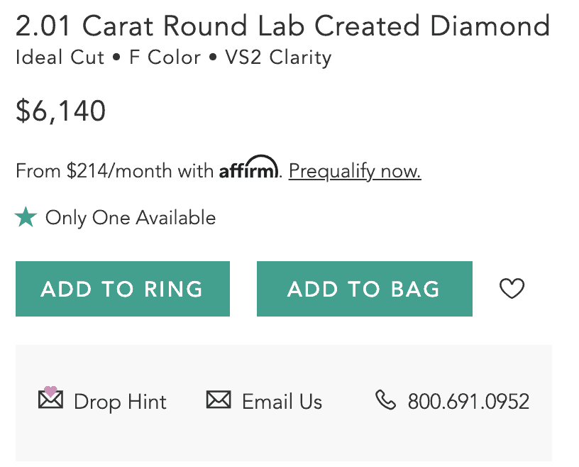 And since lab-grown diamonds naturally have better clarity than mined diamonds, you really shouldn’t need the highest clarity. But if you do go that route, you’re getting it a fantastic price compared to how much a VVS or IF diamond of the same grades would cost.