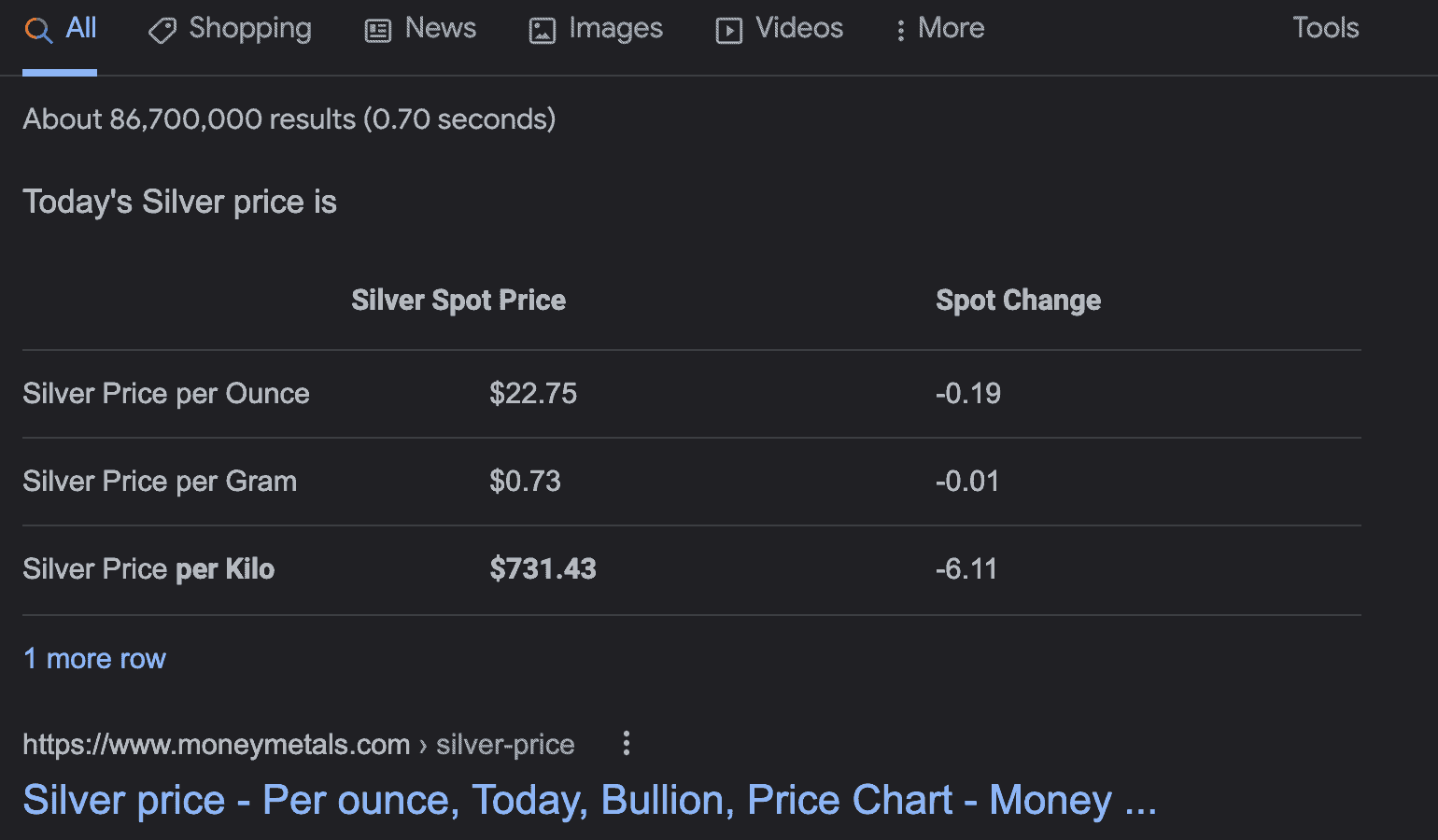 The price of sterling silver is much less than this. Sterling silver is worth about 79 cents per gram. A huge difference, right?