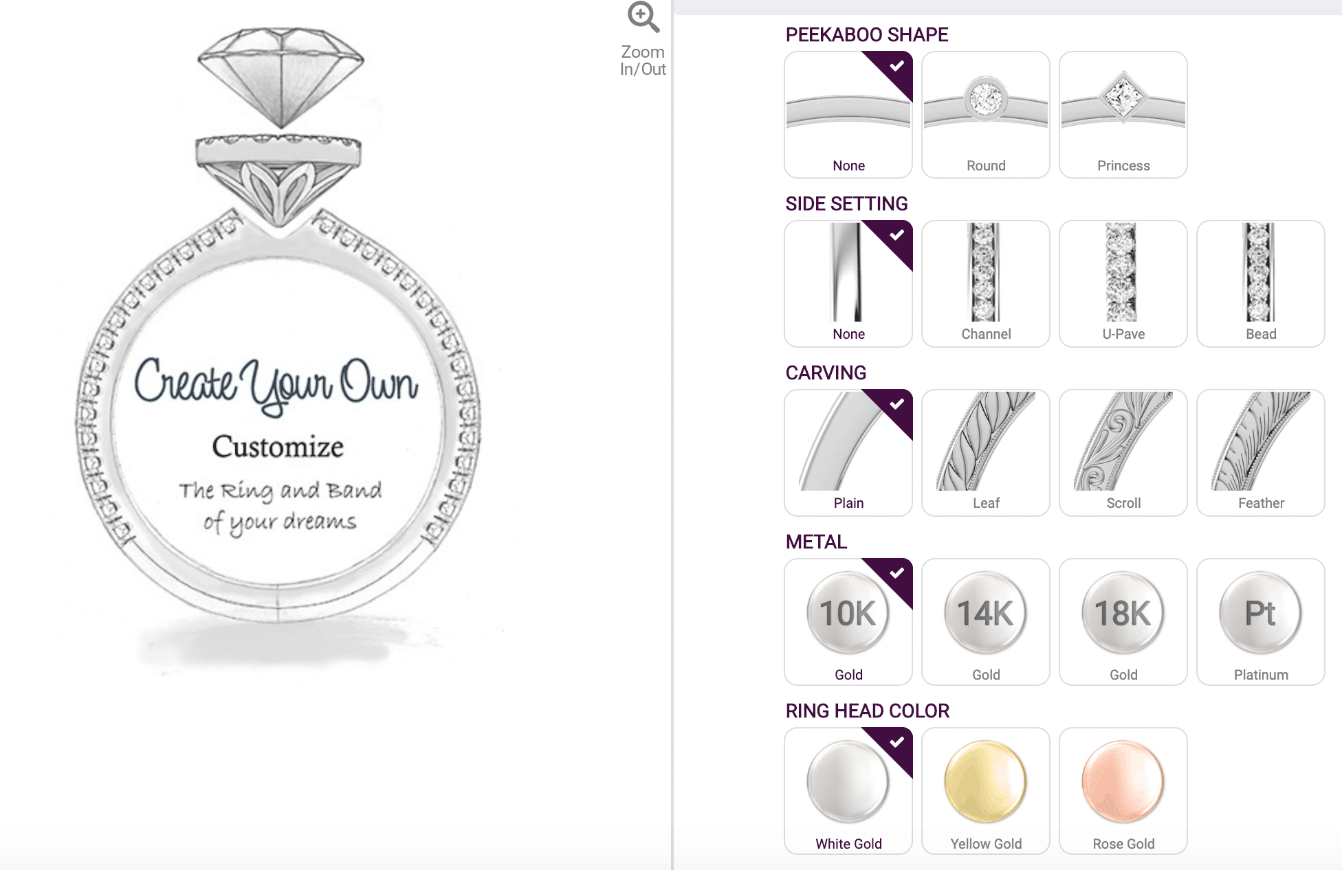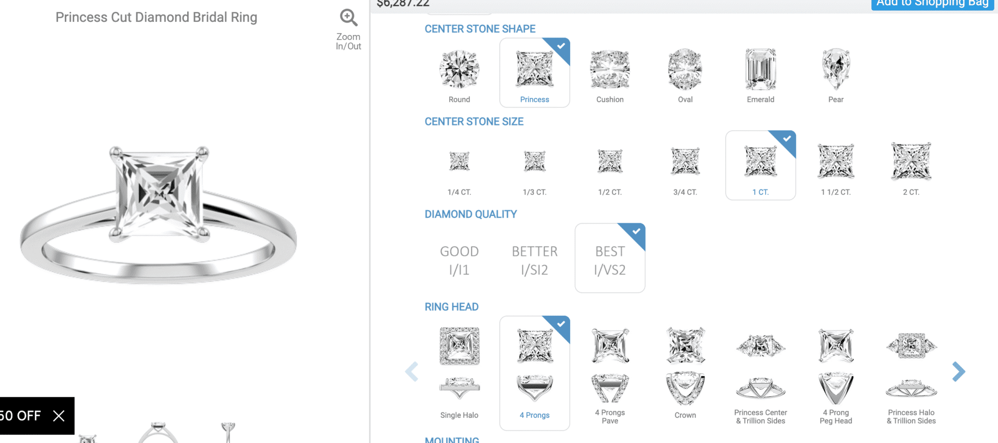 You get to style the head of your engagement ring by selecting from a set of options and the same goes for the setting styles.