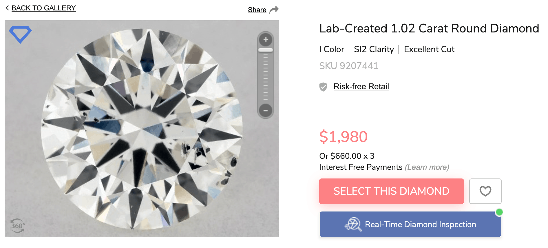 The downside to this 360 viewer is that it’s not on all diamonds. Some of the diamonds only show a looped angle when you click on the 360 viewer.