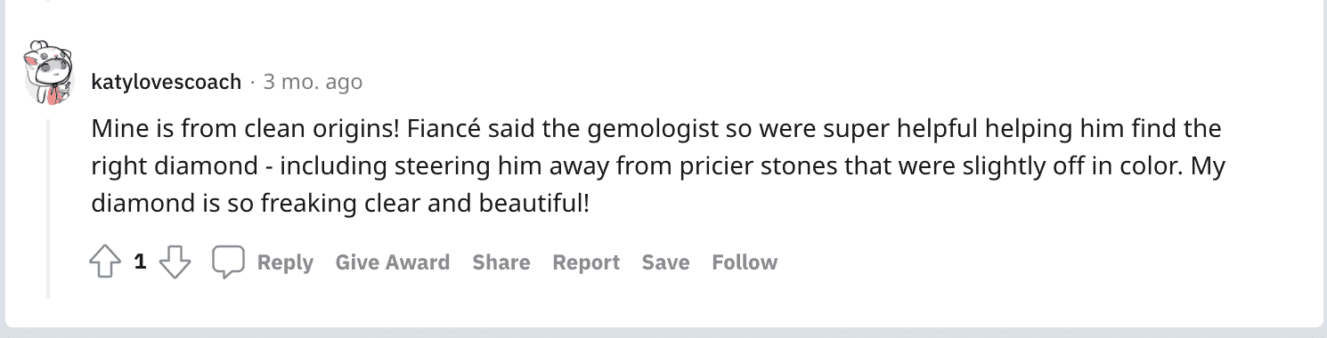 Instead, we check out Reddit and many subreddits that speak of diamonds and engagement rings. Here you can read both positive and negative experiences.