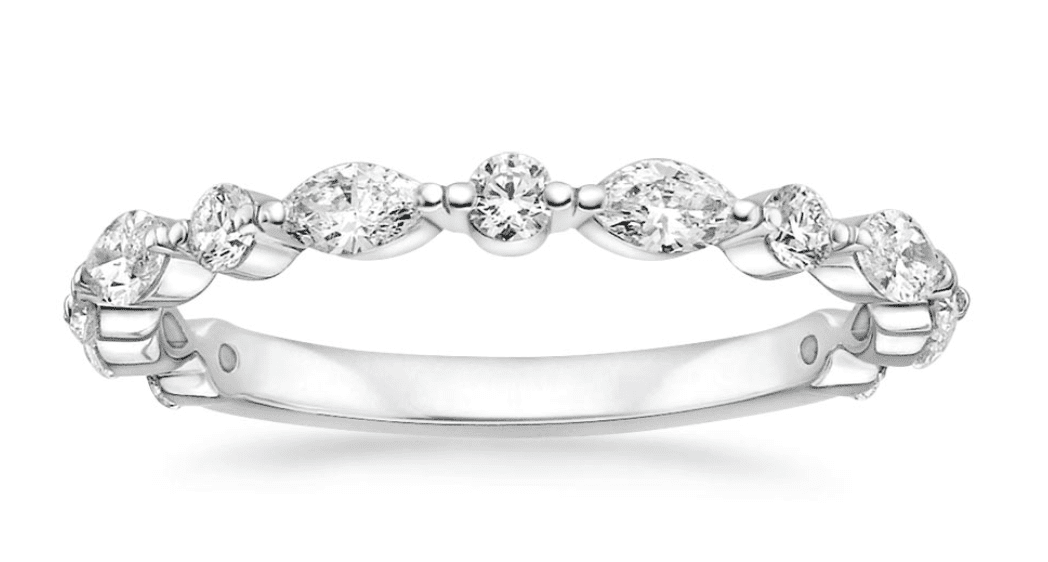 Your wedding ring, or wedding band is typically made out of either plain metal or with stones. For many women, they tend to choose a pave style wedding band like this one below: