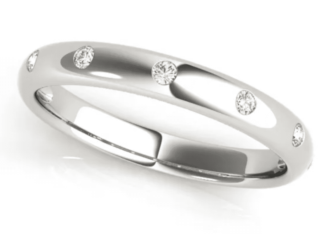 Wedding bands don’t have center stones, so the setting names are about the way the accent stones are are arranged. Some ring settings for wedding bands include: